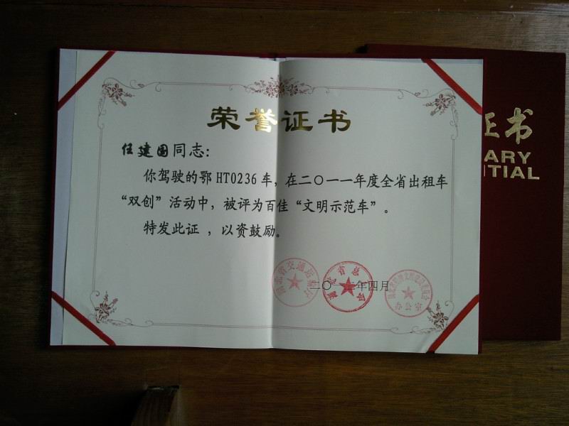 在創(chuàng)建和諧勞動(dòng)關(guān)系活動(dòng)中,荊門市公交出租汽車有限公司充分發(fā)揮和調(diào)動(dòng)廣大駕駛員的勞動(dòng)熱情和創(chuàng)造活力,獲得了一系列可喜成績。雷鋒車隊(duì)隊(duì)長曾凡華,2011年獲得省雙創(chuàng)“文明示范車”、荊門市出租行業(yè)“服務(wù)先鋒號(hào)”;2012年獲得荊門市“十佳的哥”榮譽(yù)稱號(hào);前任隊(duì)長王建春獲得省交通廳“優(yōu)秀班組長”榮譽(yù)稱號(hào);隊(duì)員任建國獲省交通廳“文明示范車”先進(jìn)個(gè)人稱號(hào)。2013年6月,公司雷鋒車隊(duì)獲“全國工人先鋒號(hào)”榮譽(yù)。2014年2月28日,公司鄂HT1223雷鋒車駕駛員張華維獲省精神文明建設(shè)委員會(huì)辦公室、省交通運(yùn)輸廳“雷鋒號(hào)”榮譽(yù)標(biāo)牌。雷鋒車隊(duì)先后涌現(xiàn)出一批優(yōu)秀駕駛員,分別獲得了荊門出租汽車行業(yè)“服務(wù)先鋒號(hào)”、“十佳的哥的姐”等稱號(hào)及“荊門市道德模范提名獎(jiǎng)”、“荊門市見義勇為先進(jìn)集體”。