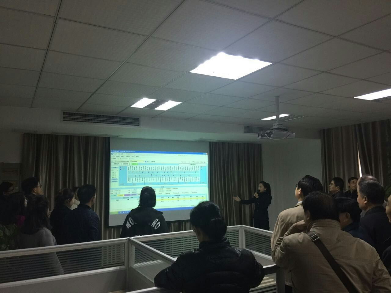 指揮調(diào)度中心技術人員講解介紹智能調(diào)度系統(tǒng)的功能,對智能調(diào)度系統(tǒng)及智能公交手機APP進行了解。