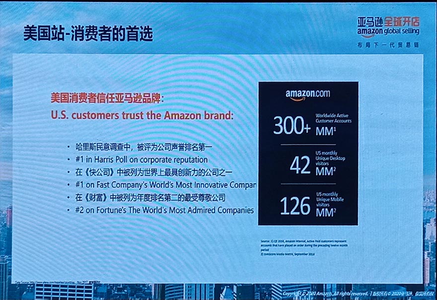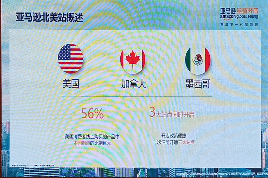 美國、加拿大、墨西哥三大站點一次同時開通,美國消費者先生購物產(chǎn)品中,中國制造占比巨大。達(dá)到56%。而美國站點又是全球亞馬遜銷售最大的一個站點。