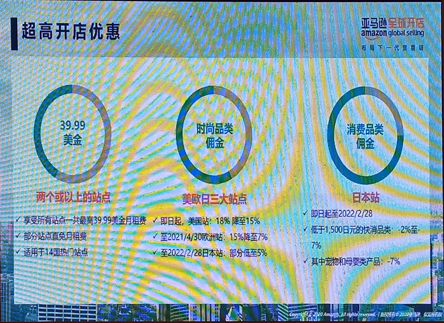 39.99美金/月開通兩個或兩個以上站點,部分站點可以直接免租金。時尚類傭金還有更多優(yōu)惠,比如從現(xiàn)在起美國站從18%將至15%;至2021/4/30歐洲站從15%降至7%;至2022/2/28日本站部分降至5%;