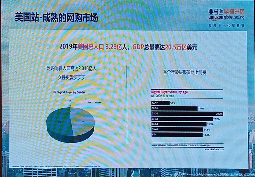 美國站-城市的網(wǎng)購市場。2019年美國總?cè)丝跀?shù)量是3.29億人,GDP總量高達(dá)20.5萬億美元。網(wǎng)購消費水平高達(dá)2.018億人,在網(wǎng)購人群和數(shù)量上都非常的占優(yōu)勢,而且人均消費水平非常高,女性買家更喜歡買買買。