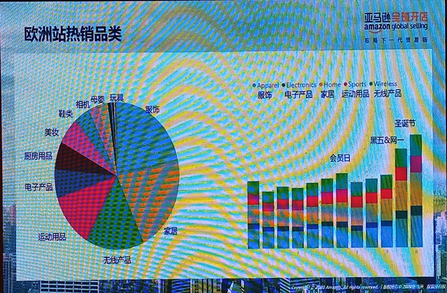 歐洲站點熱銷品類圓餅圖,還有各個購物節(jié)的銷售柱狀圖。數(shù)據(jù)由亞馬遜提供。