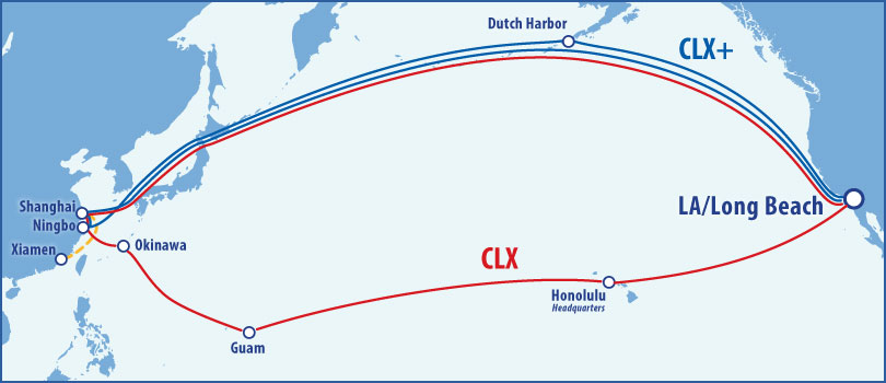 CLX+航線:寧波 - 上海 - 阿拉斯加 -長灘港 - 寧波